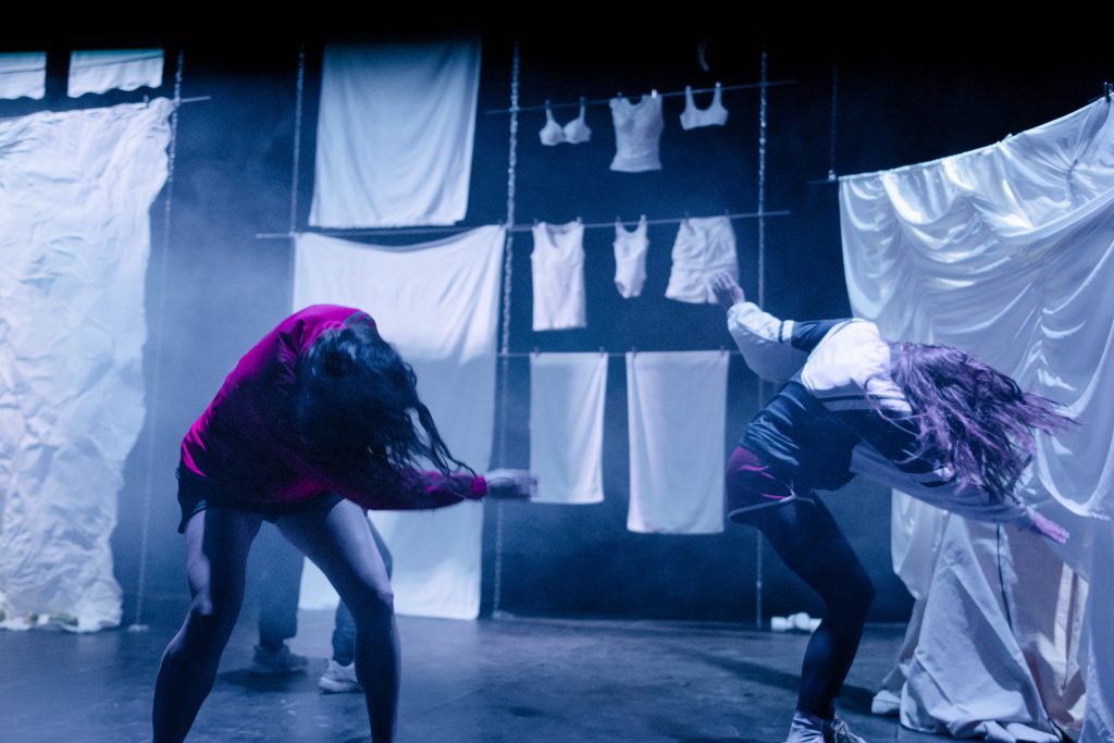 Tristes en été explore le rapport au corps féminin à travers les âges, entre désir de liberté et injonctions sociales. Trois femmes interrogent la perte de légèreté corporelle à la fin de l’enfance et la quête d’acceptation à l’âge adulte. La salle de sport devient un espace de réminiscence, où les altères et la répétition des mouvements sportifs agissent comme une machine à remonter le temps. Quatre tableaux, rythmés organiquement par des saisons distinctes, retracent l’enfance, l’adolescence, la sexualité naissante... Ce chemin parcouru les rapprochent d'elles-même. Et les unes des autres.